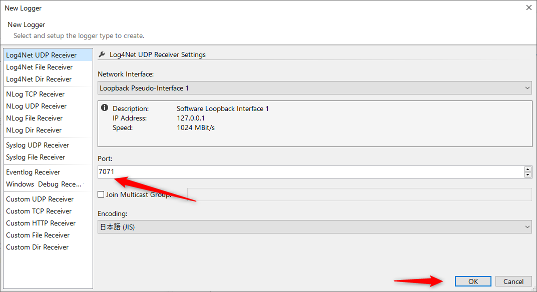 そしたら新しいウィンドウが出てくるので、portが7071になっていることを確認してOKを押します。