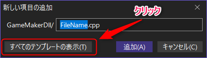 ファイル名を「GmlExportedFunction.cpp」に変更して「追加」をクリックしてください。